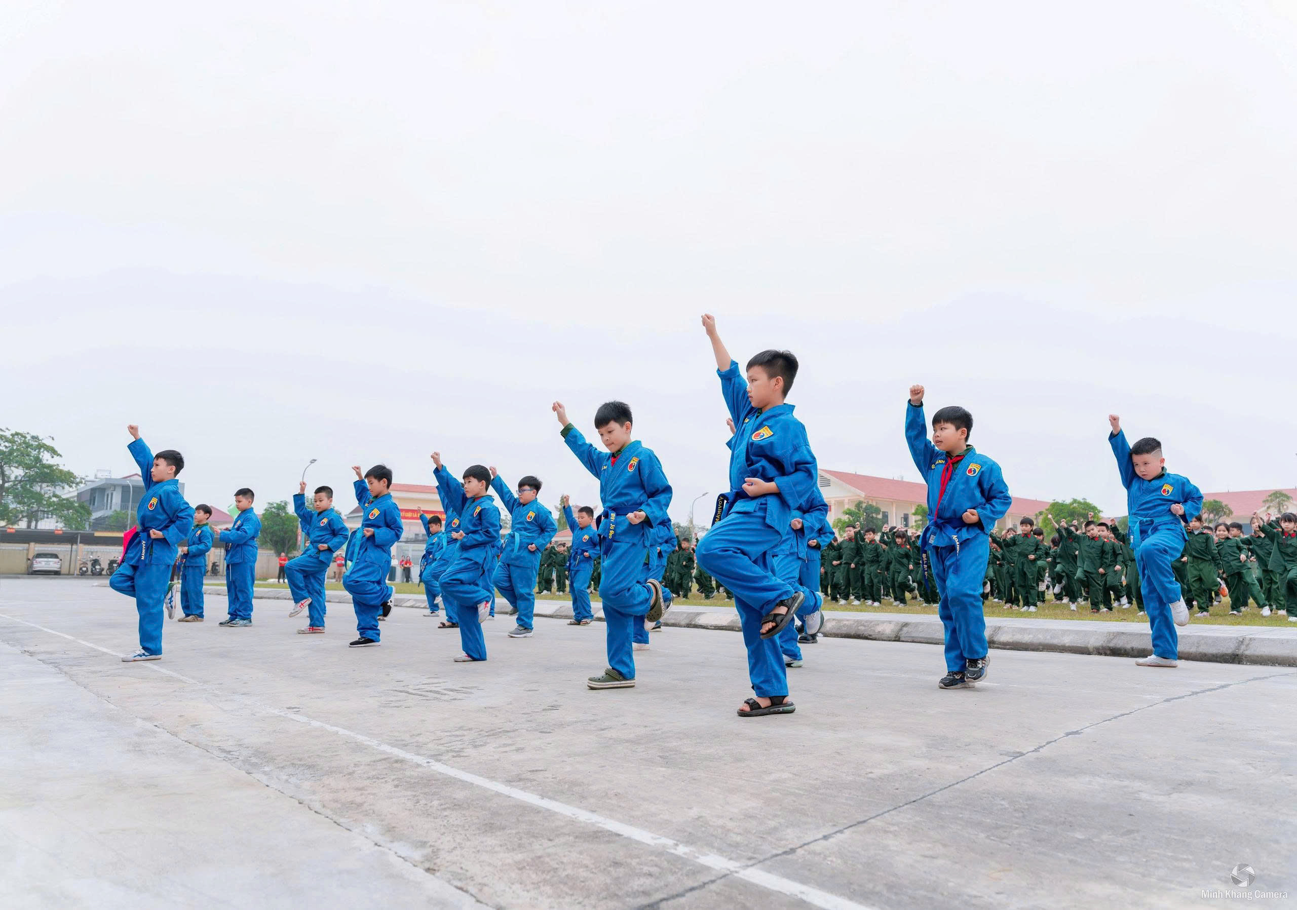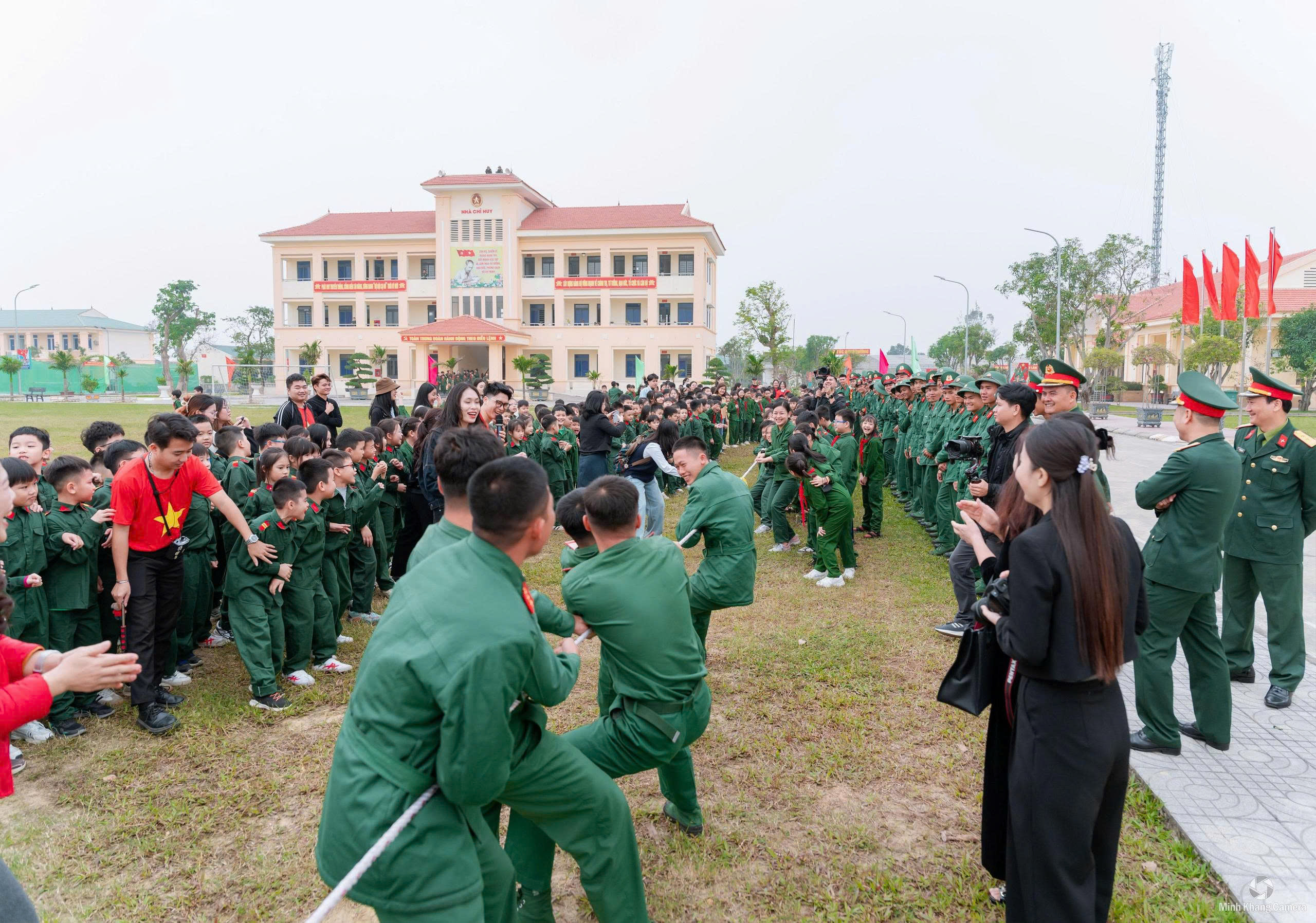 Tiếng cười vang lên rộn ràng hơn trong những trận kéo co đầy hào hứng, nơi các em học sinh và các chú bộ đội cùng nhau sẻ chia niềm vui, gắn kết yêu thương. Đặc biệt, các em học sinh trường Tiểu học Lê Mao đã gửi tặng các chú bộ đội những tiết mục văn nghệ chân thành và xúc động: những giai điệu trong trẻo, những bài ca chan chứa niềm tự hào dân tộc, những điệu múa võ mạnh mẽ như lời tri ân sâu sắc gửi tới những người đang ngày đêm bảo vệ bình yên cho Tổ quốc.